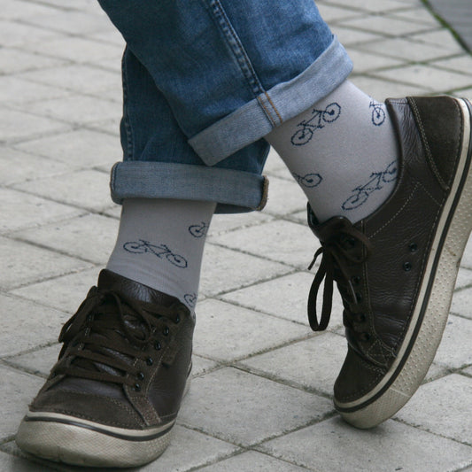 Calcetines Divertidos con Dibujo de Bicicletas Grises