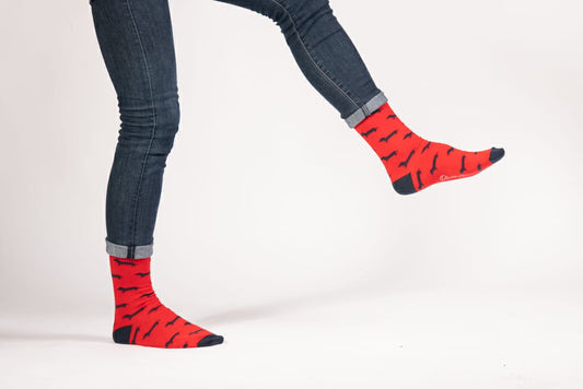Calcetines Divertidos con Dibujos de Perros Rojos