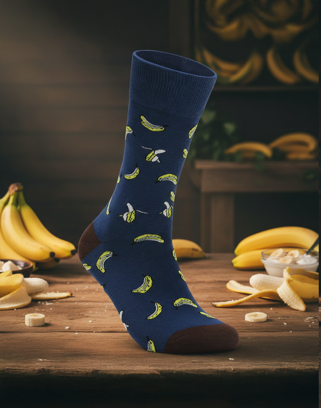 En Diver Socks, te presentamos los originales Calcetines Plátanos, la elección perfecta para quienes desean agregar un toque juguetón y lleno de carácter a su estilo. Estos calcetines son un derroche de diversión con sus diseños de plátanos sobre un fondo azul vibrante.